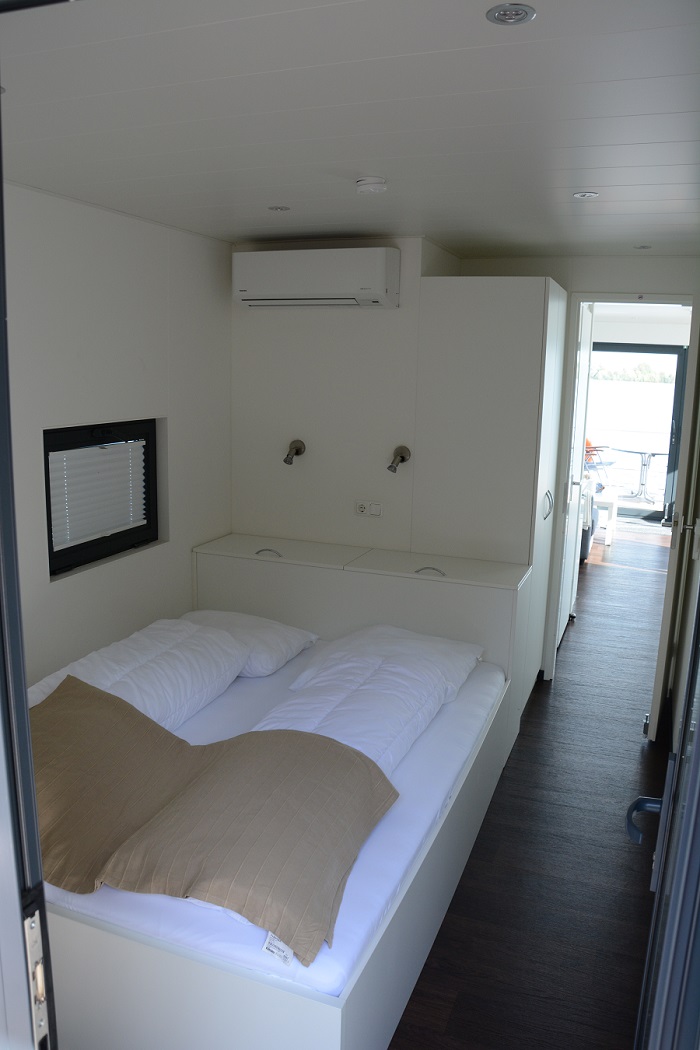 Schlafen Sie wie Zuhause Unser Hausboot hat zwei Schlafzimmer mit jeweils einem großen Doppelbett (160x200cm) und eine Doppelschlafcouch im Wohnzimmer. Sie können mit bis zu 4 Erwachsenen sehr komfortabel übernachten und für Kinder oder kurzfristigen Besuch steht eine hochwertige Schlafcouch im Wohnzimmer zur Verfügung. |